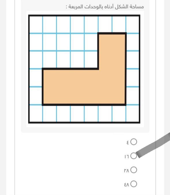 مساحة الشكل أدناه بالوحدات المربعة ٤ ١٦ ٢٨ ٤٨