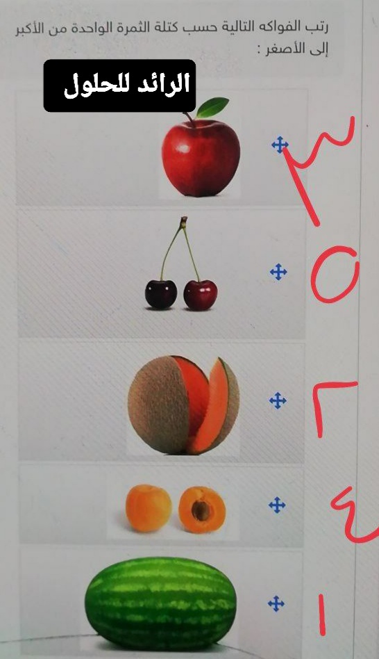رتب الفواكه التالية حسب كتلة الثمرة الواحدة من الأكبر إلى الأصغر : بيت العلم
